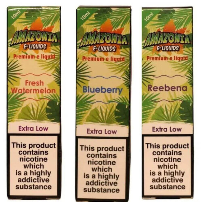 The Amazonia 10ml 50/50 e-liquid is available in multiple nicotine concentrations, such as 0mg, 3mg, 6mg, 12mg, and 18mg. The different ranges allow you to match the nicotine concentration to your required strengths.