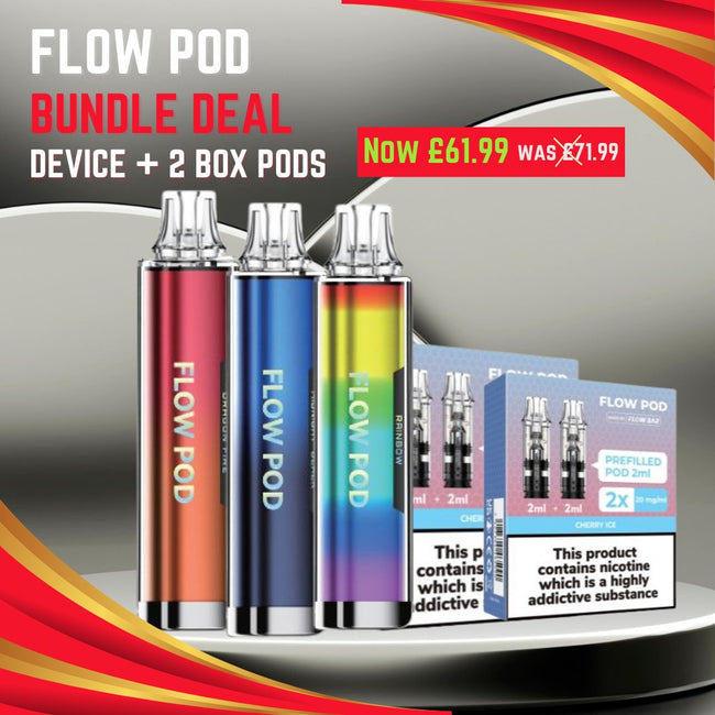 Select the device color and pod flavors of your preference on our site. Read these steps; they will allow you to customize your bundle: Flow Pod Device + 2 Boxes of Pods—Vape Wholesale Supplier. Eight unique colors are available, giving freedom of choice. In case you are looking for a black slinky, bold red, or stunning blue, we do have you covered with the necessary color. Head to the pods section and scan through our unique selection of 35 mouth-watering flavors. From fruity shrinks like strawberry and mango to seasoned tobacco and menthol, there is something for everyone.