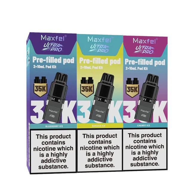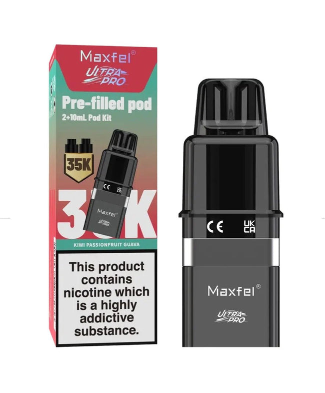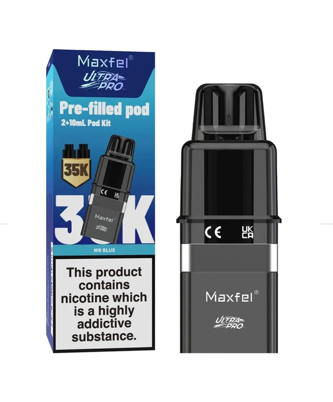 The Maxfel Ultra Pro 35k Prefilled Pods are designed to be used with the Maxfel Ultra Pro 35k Prefilled Pod Kit.