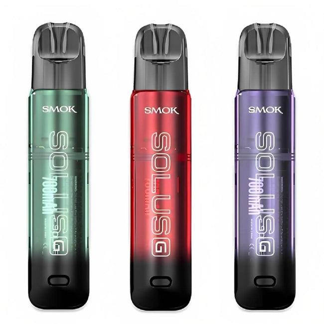 SMOK Solus G Pod Kit features a 700mAh internal battery with max 15W output, compatible with SMOK Solus refillable pod cartridge that accommodates 2ml of vape juice. the Solus G Pod Kit offers an adjustable airflow by changing the inserted orientation of the pod, allotting for MTL and RDL vaping. It is also compatible with SOLUS 0.9Ohm coils, and the friendly power makes it more suitable for MTL vaping, even for starters without any stress.