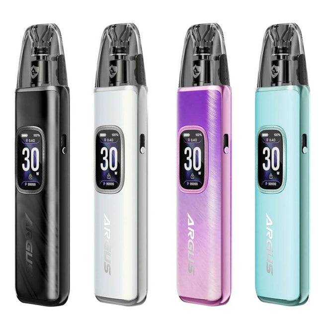 Cartridge: Comes with two Argus Top Fill Cartridge V2 options—0.4Ω and 0.7Ω—both with a 3ml capacity and top-side filling design.