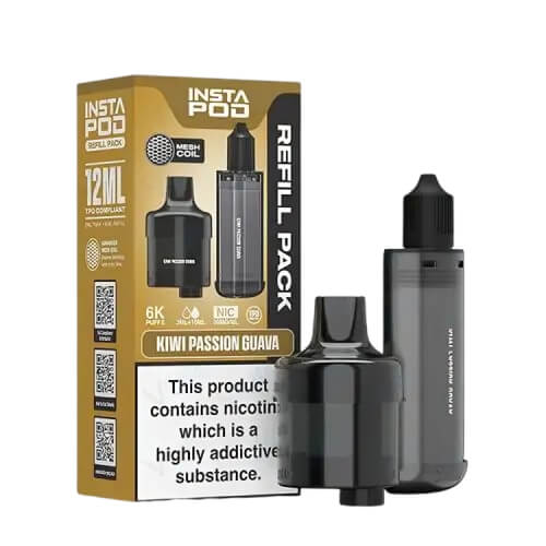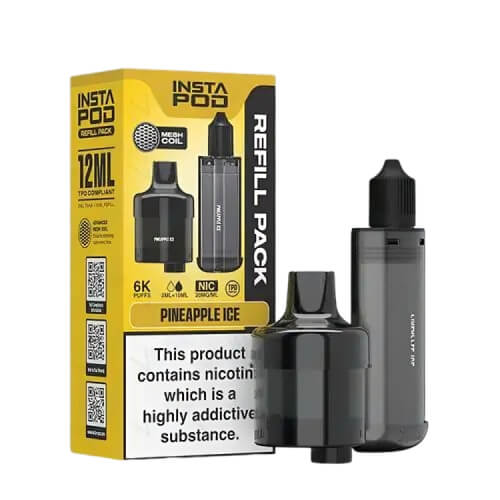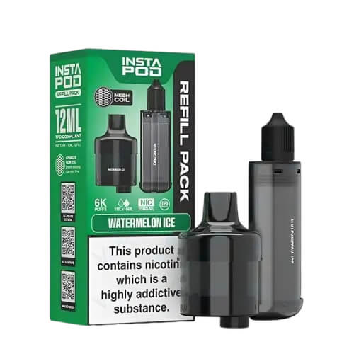 The Instapod 6000 Prefilled Pods are designed exclusively for the Instapod 6000 pre-filled pod kit. The pod helps in elevating your MTL vaping experience. One of the standout features of the Instapod is its incredible 20mg (2%) nic-salts e-liquid. It comes prefilled in its 2ml dual mesh 1.2-ohm coil pod cartridge and 10ml auto-refilling container.