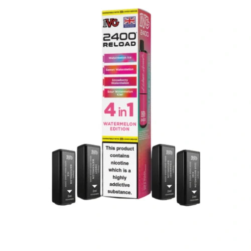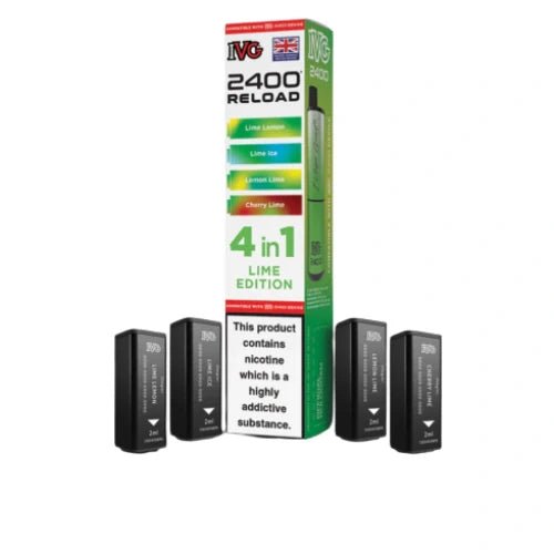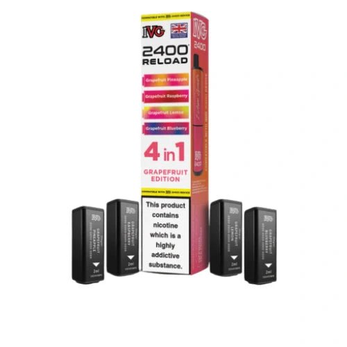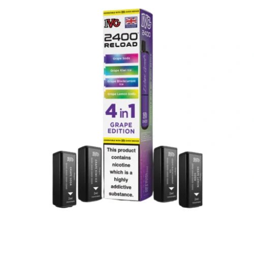 IVG 2400 Reload 4-in-1 Multi Flavour Pre-filled Vape Pods are designed for vapers who prefer variety and convenience in their vaping experience. Each device comes with four pre-filled pods, offering a total of 2400 puffs per device (600 puffs per pod). These pods are available in a range of refreshing flavours and are compatible with the IVG 2400 Rechargeable Vape Kit.