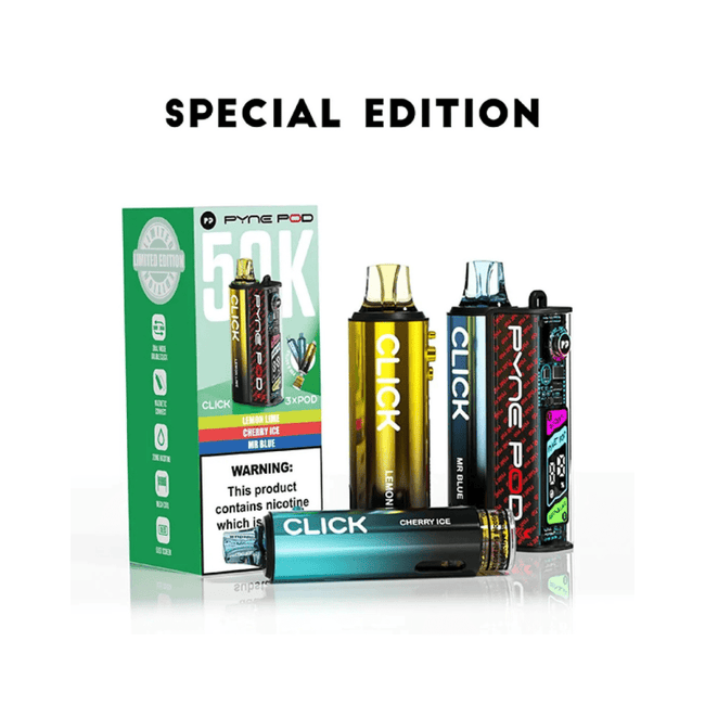 Let's talk about the Pyne Pod Click 50K disposable pod, which is an advanced disposable vape that features boost mode with simple 2-click activation. It is perfect for those who are looking for something that bridges the gap between a refillable pod kit and single-use devices.